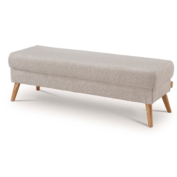 Die Forestales Bettbank Nizza ist die ideale Ergänzung für Ihr Schlafzimmer oder Wohnzimmer. Komplett bezogen mit dem hochwertigen Ascot Bouclé Zweiton-Gewebe in der eleganten Farbe Pearl lädt sie zum gemütlichen Sitzen und Entspannen ein. Die runden Füße aus massiver Wildeiche, geölt mit naturbelassenen Rohstoffen, setzen natürliche Akzente und sorgen für einen stabilen, sicheren Stand. Das klare, zeitlose Design macht die Bettbank zu einem vielseitigen Möbelstück, das in viele Einrichtungsstile passt. Mit den Maßen 140 x 48 x 48 cm und einem Bodenabstand von 18 cm bietet die Forestales Bettbank Nizza ausreichend Platz und Komfort - perfekt abgestimmt auf das Polsterbett Nizza und Ihre individuellen Bedürfnisse.