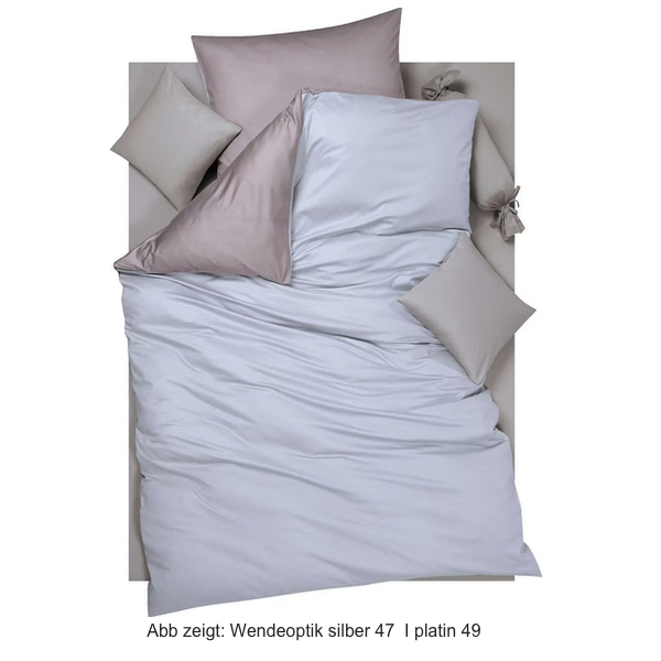 Hinweis: Die Abbildung zeigt die Bettwäsche in Wendeoptik (Doubleface Optik) silber 47 I platin 49. Zum Lieferumfang gehört nur ein Deckenbezug + ein Kissenbezug in der gewählten Größe. Zusatzkissenbezüge sind optional gegen Aufpreis erhältlich.