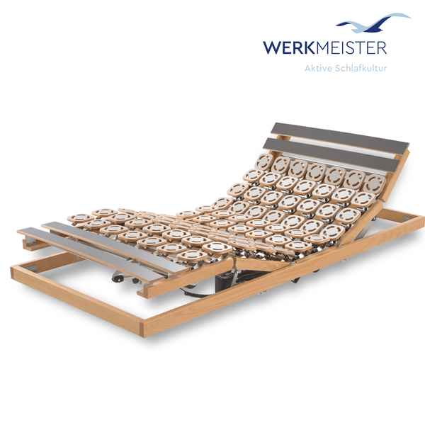 Der Werkmeister U 340 QUATTRO M2 ( frühere Herstellerbezeichnung Werkmeister REGUFLEX QUATTRO M2) ist eine motorisch verstellbare Unterfederung mit höchster Punktelastizität. Mit zwei leistungsstarken Motoren kann der Oberkörper und Beinbereich individuell motorisch verstellt werden. Zusätzlich lässt sich das kurze Kopfteil manuell 3-fach verstellen. Als Premium Unterfederung der Extraklasse ist der Werkmeister U 340 QUATTRO M2 noch zusätzlich mit sowohl nützlichen wie auch angenehmen Funktionen wie Funkfernbedienung mit Memoryfunktion und Taschenlampenfunktion, sowie einer Unterbodenbeleuchtung ausgestattet. Eine integrierte Netzfreischaltung ist selbstverständlich ebenfalls eingebaut.